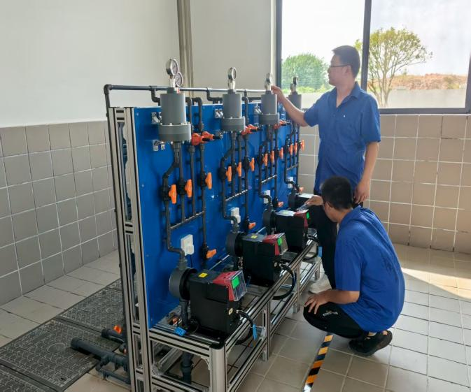 在運行保障方面,水廠精準發(fā)力。運行班組加強核心設(shè)施巡檢頻次,對送水泵房、加藥間、濾池等關(guān)鍵區(qū)域細致排查,動態(tài)消除設(shè)備隱患;通過科學調(diào)度實現(xiàn)清水池夜間蓄水,確保早高峰水位充足,保障日間足量供水。針對供水量持續(xù)上升態(tài)勢,水廠提前儲備應(yīng)急物資與設(shè)備,新增活性炭及投加裝置,為水質(zhì)突變應(yīng)急處置筑牢防線。
